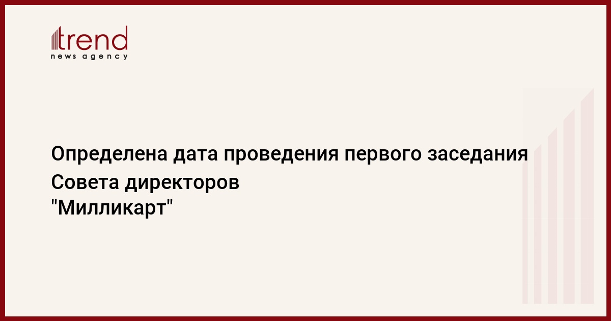 Первое заседание Совета директоров ООО "Милликарт" планируется провести 20 сентября. Как сообщили Trend в процессинговом центре карточных платежей, на заседании планируется утверждение структуры ООО, штата, тарифов, плана развития центра, а также рассмотрение других ключевых вопросов.