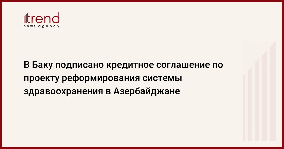Сегодня в Баку состоялось подписание кредитного соглашения по проекту реформирования системы здравоохранения в Азербайджане. Как передает Trend , на церемонии подписания министр финансов страны Самир Шарифов сказал, что основная цель - устранение системы здравоохранения оставшейся с советского периода, так как без этого невозможно будет провести реформы в этом секторе.