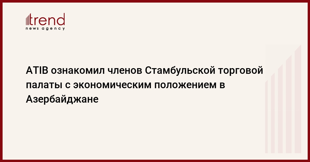 Сегодня в Баку прошла встреча Азербайджано-турецкого объединения деловых людей (ATIB) с членами правления Стамбульской торговой палаты (СТП), которые с деловым визитом с 9 по 13 октября будут находиться в Азербайджане, передает Trend . Hа встрече член правления ATIB Али Ехсен Гендж проинформировал об экономическом положении в стране, реализуемых крупных нефтяных проектах.