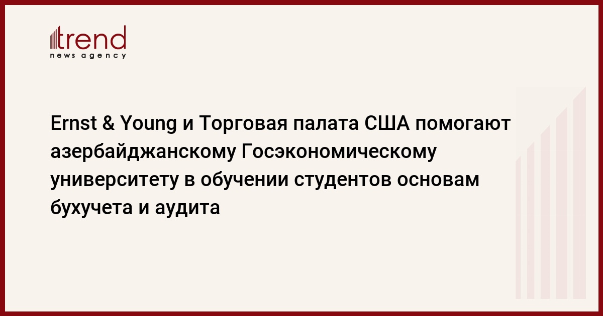 Бакинский офис Ernst & Young, Торговая палата США в Азеробайджане и Азербайджанский государственный экономический университет (АзГЭУ) осуществили сотрудничество в поддержку новой учебной программы в АзГЭУ. Как передает Trend со ссылкой на сообщение Ernst & Young, при финансовой поддержке Торговой палаты США, Ernst & Young организовал промежуточный курс бухгалтерского учета для студентов 4-го курса Группы особых талантов университета.