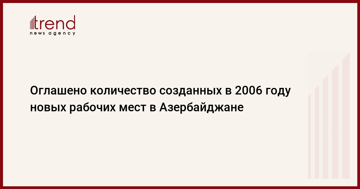 За 9 месяцев 2006 года в Азербайджане создано 134,8 тыс. новых рабочих мест, из них 75 тыс. - постоянных. Как сообщил на сегодняшней пресс-конференции председатель Госкомитета по статистике Ариф Велиев, за три года было открыто всего 481 тыс. новых рабочих мест, из которых на постоянные приходится 248 тыс., передает Trend .