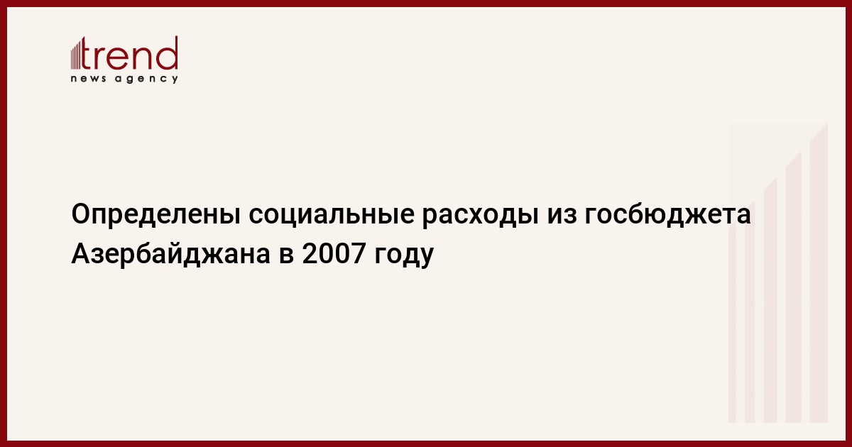 Расходы госбюджета Азербайджана-2007 на социальную сферу составят 2,1 млрд. манатов, что по сравнению с 2006 годом на 47 % больше, сообщили Trend в постоянной комиссии Милли меджлиса по социальной политике.
