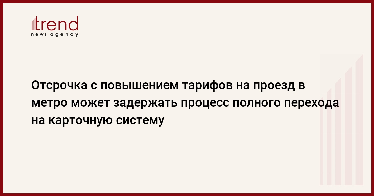 Планы по полному переходу с 1 января 2007 года на оплату проезда в Бакинском метрополитене посредством карточек могут быть отложены. Как сообщил Trend генеральный директор процессингового центра "Азерикард" Эльмар Садыхов, все еще остаются нерешенными организационные вопросы.