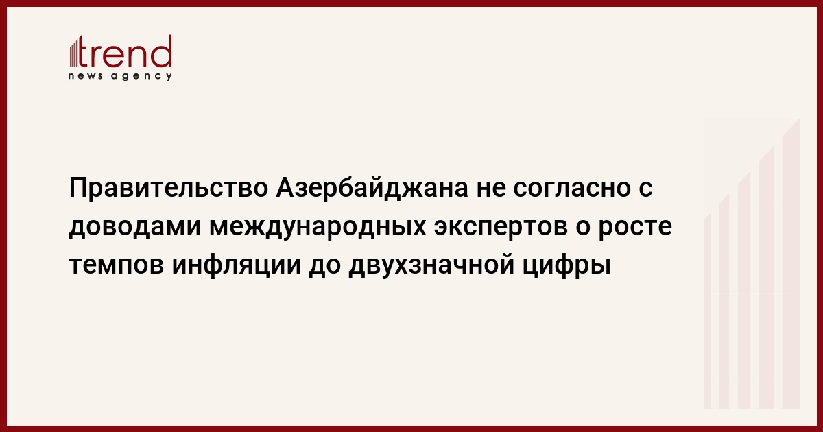 Правительство Азербайджана не согласно с заявлениями представителей международных финансовых организаций о достижении инфляции двухзначной цифры как до конца 2006 года, так и в 2007 году. По их мнению, увеличение бюджетных расходов на будущий год на более, чем 50% окажет давление на повышение инфляции. Как сообщил Trend заведующий отделом экономической, кредитной и ценовой политики Кабинета министров страны Октай Ахвердиев, правительство страны намерено предпринимать адекватные меры для удержания инфляции.