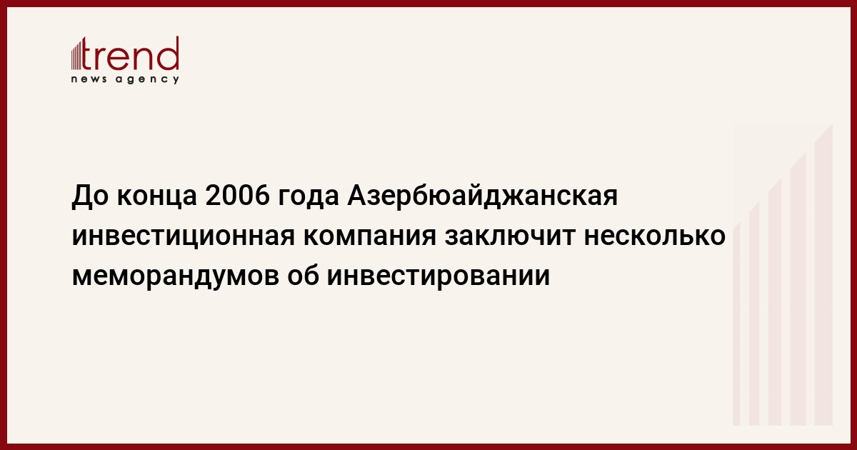 До конца 2006 года Наблюдательным советом Азербайджанской инвестиционной компании (АИК) планируется утверждение одного проекта. Как сообщил Trend исполнительный директор компании Анар Ахундов, до конца года еще несколько проектов минимум будет закреплено меморандумами о том, что АИК планирует инвестировать в эти компании.