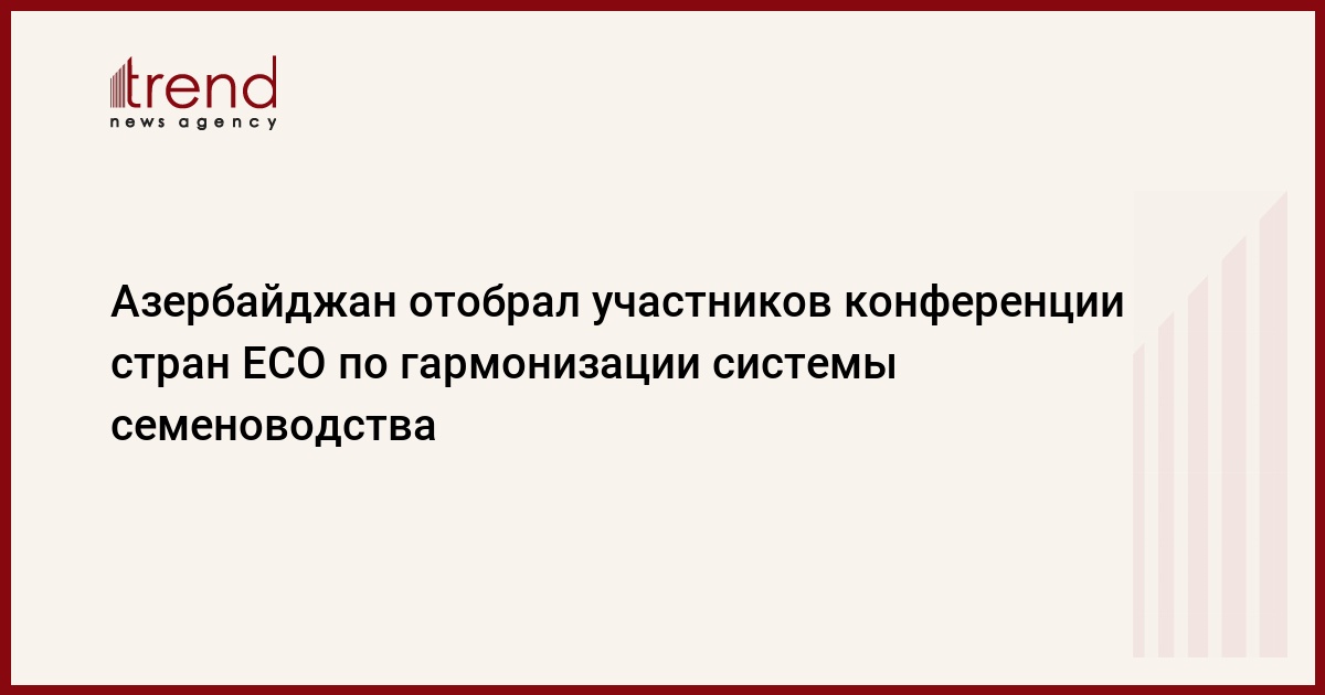 Конференция по вопросам гармонизации политики и системы семеноводства в странах ECO пройдет 17- 19 января 2007 года в Исламабаде. Ожидается обсуждение общего состояния системы семеноводства в странах, пути гармонизации законодательно-правовой базы, расширение сотрудничества в сфере семеноводства.