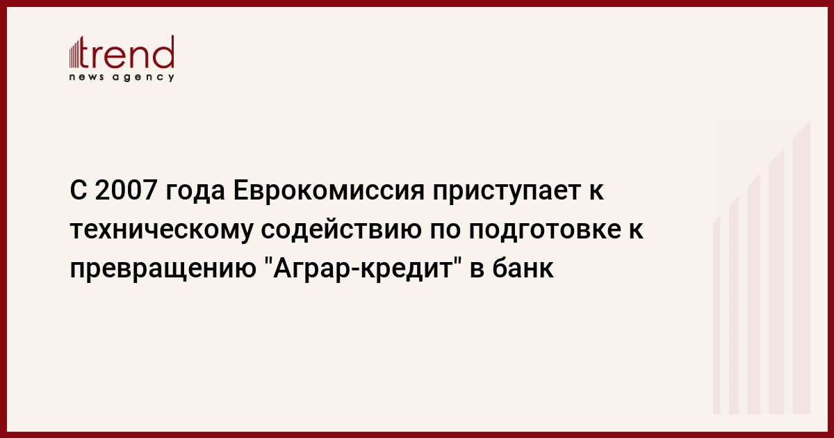 С начала 2007 года Европейская комисия приступает к оказанию технической помощи небанковской кредитной организации "Аграр-кредит" по подготовке ее на получение полной банковской лицензии, а в будущем открытия на приватизацию. Как сообщили Trend в "Аграр-кредит", по договоренности с ЕС определен предварительный график приватизации "Аграр-кредит" до конца 2008 года. Однако сроки превращения его в банковскую организацию не установлены.