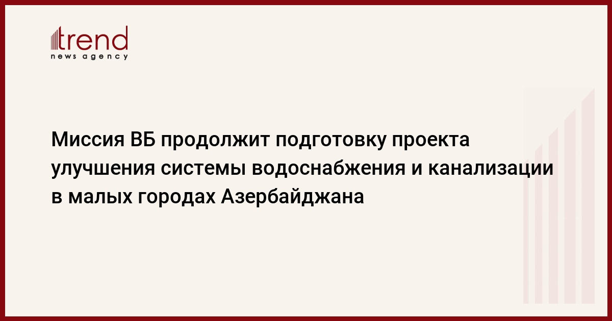 Для продолжения подготовки проекта улучшения системы водоснабжения и канализации в малых городах Азербайджана с 10 января начинается визит в Баку миссии Всемирного банка во главе с руководителем группы проектов Андреасом Роде.