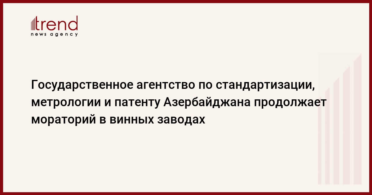 Государственное агентство по стандартизации, метрологии и патенту Азербайджана продолжает мораторий на всех винных заводах страны. Как сообщил Trend председатель Госагентства Рамиз Гасанов, Госагентство ввело в 2006 году запрет на производство ряда видов винно-водочной продукции ввиду несоответствия стандартам качества. Только на некоторые виды винной продукции были сняты ограничения.