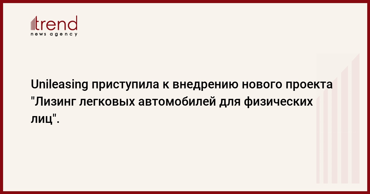 Азербайджан, Баку /корр. Trend И.Халилова / Лизинговая компания Unileasing предлагает новый лизинговый проект, для физических лиц - лизинг легковых автомобилей, говорится в сообщении компании.