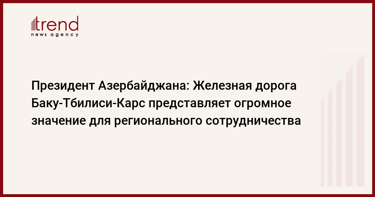 Азербайджан, Баку /корр. " / "Проект строительства железной дороги Баку-Тбилиси-Карс представляет огромное значение для регионального сотрудничества и является логическим продолжением нефте- и газопроводов Баку-Тбилиси-Джейхан и Баку-Тбилиси-Эрзурум", - сообщил президент Азербайджана Ильхам Алиев, выступая на заседании Кабинета Министров, посвященном итогам первого квартала, говорится в официальной печати.