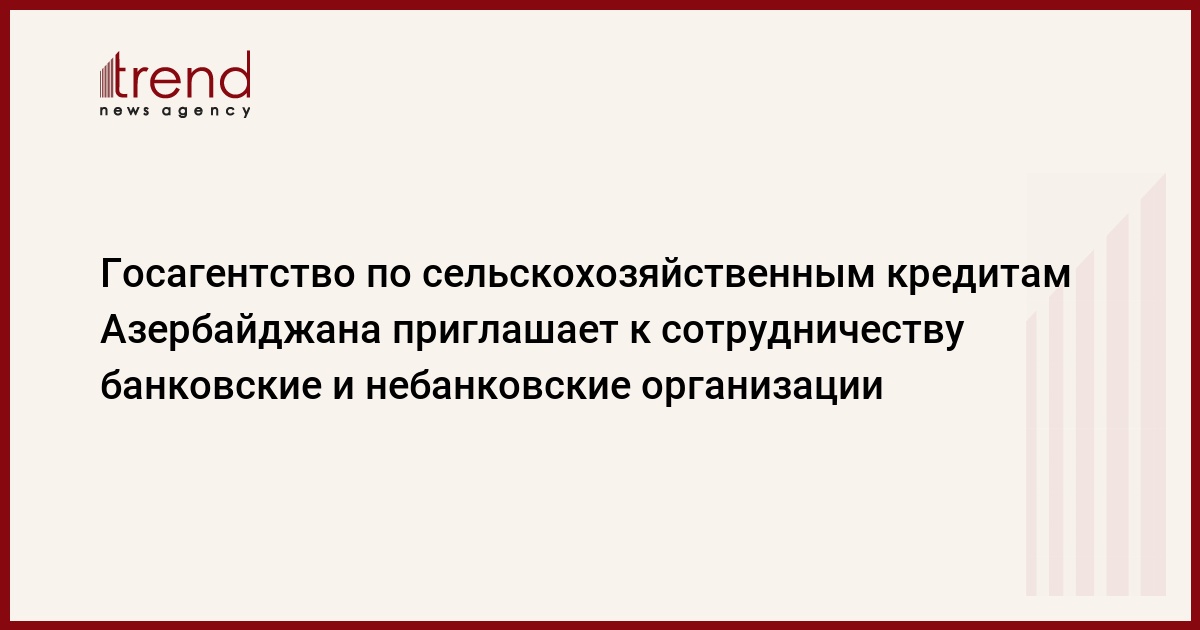 Азербайджан, Баку, /корр. Trend С.Бабаева/ Государственное агентство по сельскохозяйственным кредитам при министерстве сельского хозяйства Азербайджана приглашает к сотрудничеству банковские и небанковские организации, которые заинтересованы принять участие в кредитовании.