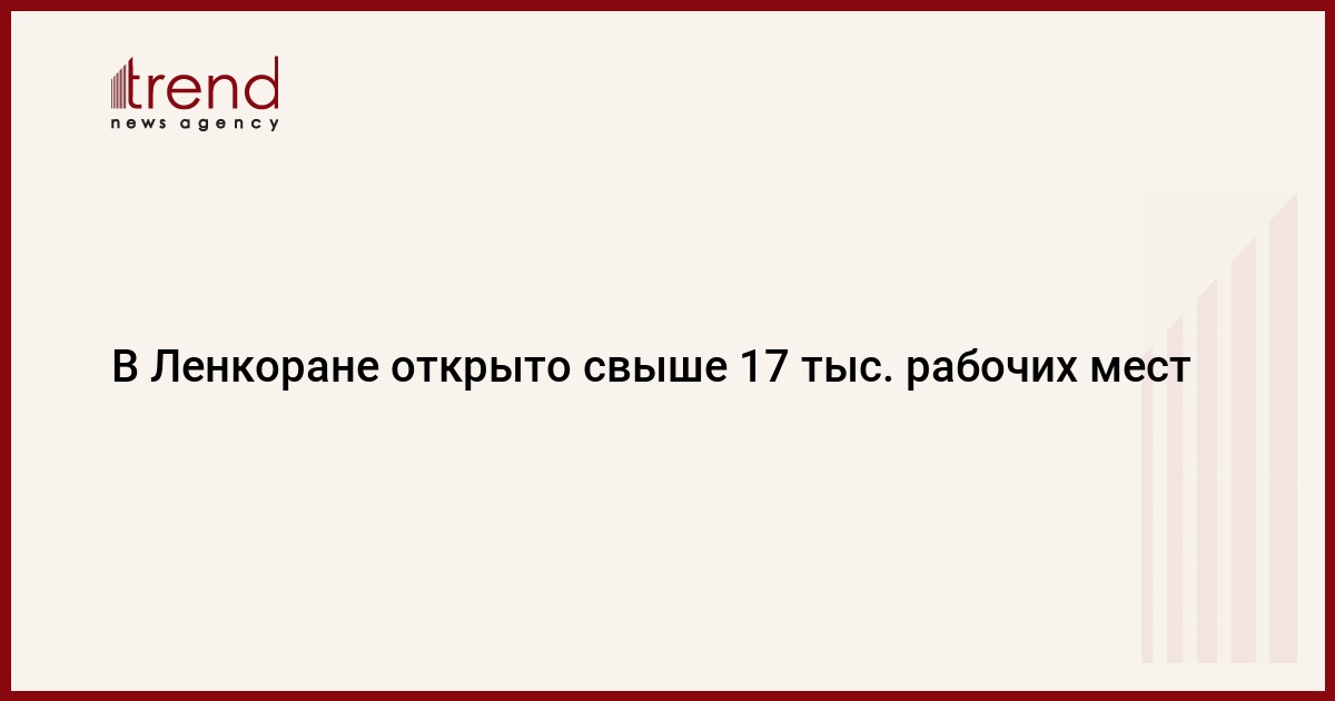 Азербайджан, Ленкоран /корр. Trend П.Алиева/ Согласно Государственной программе по социально-экономическому развитию регионов, до сегодняшнего дня в городе Ленкоран открыто 17354 рабочих места.