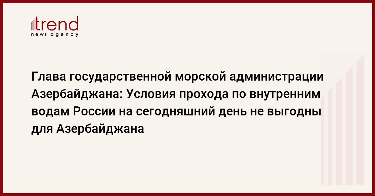 Азербайджан, Баку /корр. Trend С.Алиев/ Сегодняшние условия, создаваемые Российской Федерацией для прохода судов под азербайджанским флагом по внутренним водным путям РФ, невыгодные. Эта позиция была озвучена главой Азербайджанской государственной морской администрации Гудратом Гурбановым в ходе заседания Совета государственных администраций морского и речного транспорта стран СНГ, прошедшего в Санкт-Петербурге.