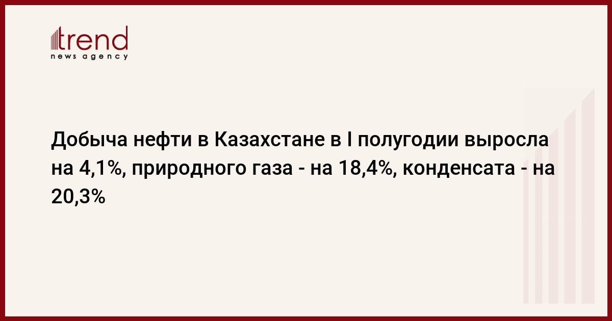В частности, по их данным, добыча природного газа в газообразном состоянии составила 8611,8 млн кубометров (больше на 26,4%), в том числе его товарный выпуск составил 4531,3 млн кубометров (меньше на 8,5%). Добыча нефтяного попутного газа в отчетном периоде составила 6097,9 млн кубометров (больше на 8,7%).