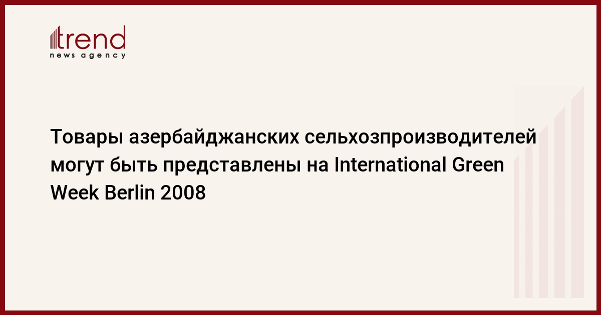 На выставке пищевой индустрии, сельского хозяйства и садоводства (Зеленая Неделя - самая известная агропромышленная выставка Германии), прошедшей в январе 2007 года, уже участвовала азербайджанская делегация, возглавляемая министром сельского хозяйства Исметом Абасовым. Однако азербайджанская сельхозпродукция будет представлена на ней в будущем году впервые.