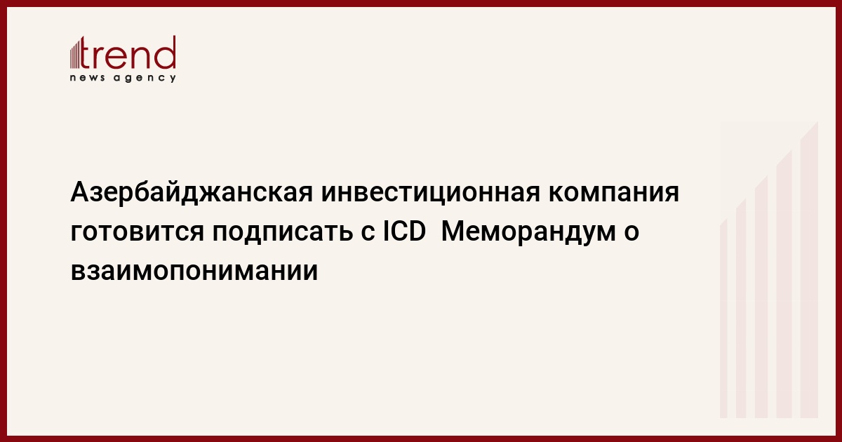 Азербайджан, Баку /корр. " И.Халилова / На этой неделе АО "Азербайджанская инвестиционная компания" планирует подписать с Исламской корпорацией развития частного сектора (ICD, структура Исламского банка развития) Меморандум о взаимопонимании, сообщил в понедельник исполнительный директор АИК Анар Ахундов. По его словам, в настоящее время ведутся переговоры, которые включают в себя как совместное инвестирование в проекты, так и создание совместной инвестиционной компании.
