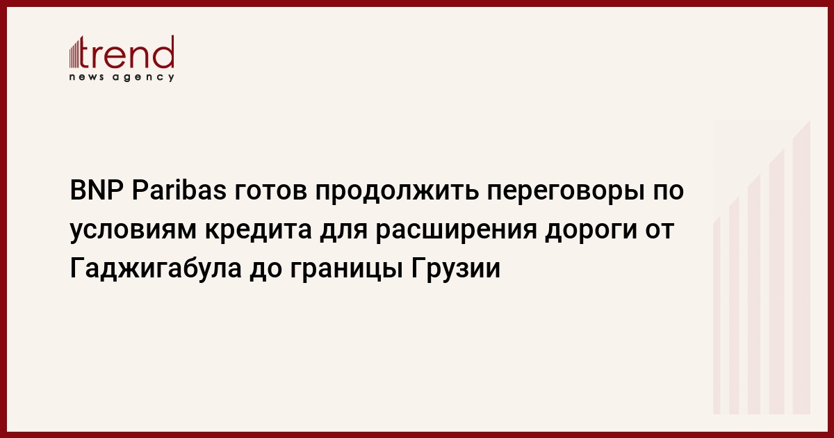 Азербайджан, Баку /корр. Trend И.Халилова / Французский банк BNP Paribas продолжает удерживать паузу в переговорах с правительством Азербайджана по смягчению условий кредита для проекта расширения автомагистрали от Гаджигабула до границы Грузии от двухполосной до четырехполосной. Как сообщили в субботу в Министерстве транспорта страны, они намерены продолжить переговоры только в конце сентября-начале октября.