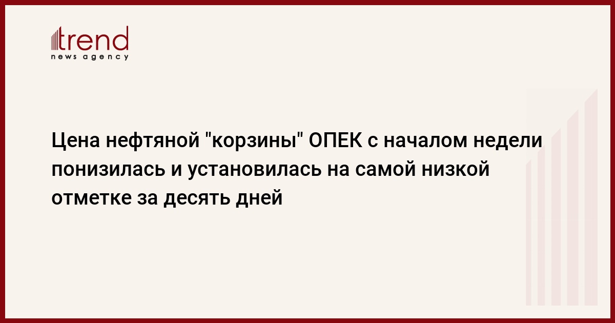 соответствовала 67,52 долл./барр. Термин "корзина" ОПЕК (OPEC Reference Basket of crudes) был официально введен 1 января 1987г. С середины июня 2005г. цена "корзины" определяется