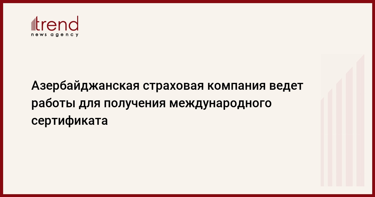 Азербайджан, Баку /корр. Trend У.Исмайлова/ Страховая компания AzSigorta готовится получить сертификат ISO 9001:2000, сказал в среду заместитель генерального директора компании Хаял Мамедханлы.