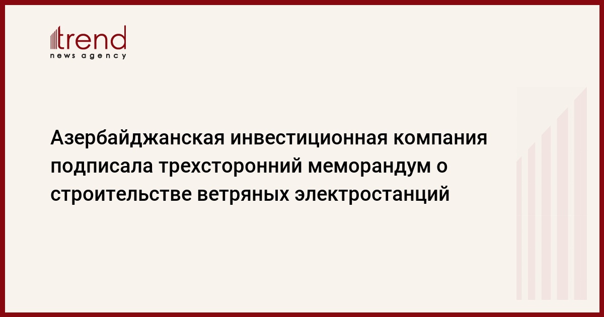 Азербайджан, Баку /корр. " И.Халилова / ОАО "Азербайджанская инвестиционная компания" (АИК), ОАО "Temirmasin" и германская Nordwind Energieanlagen GmbH заключили трехсторонний меморандум намерений на предмет реализации проекта строительства ветряных электростанций в Азербайджане, говорится в распространенном в четверг сообщении АИК.