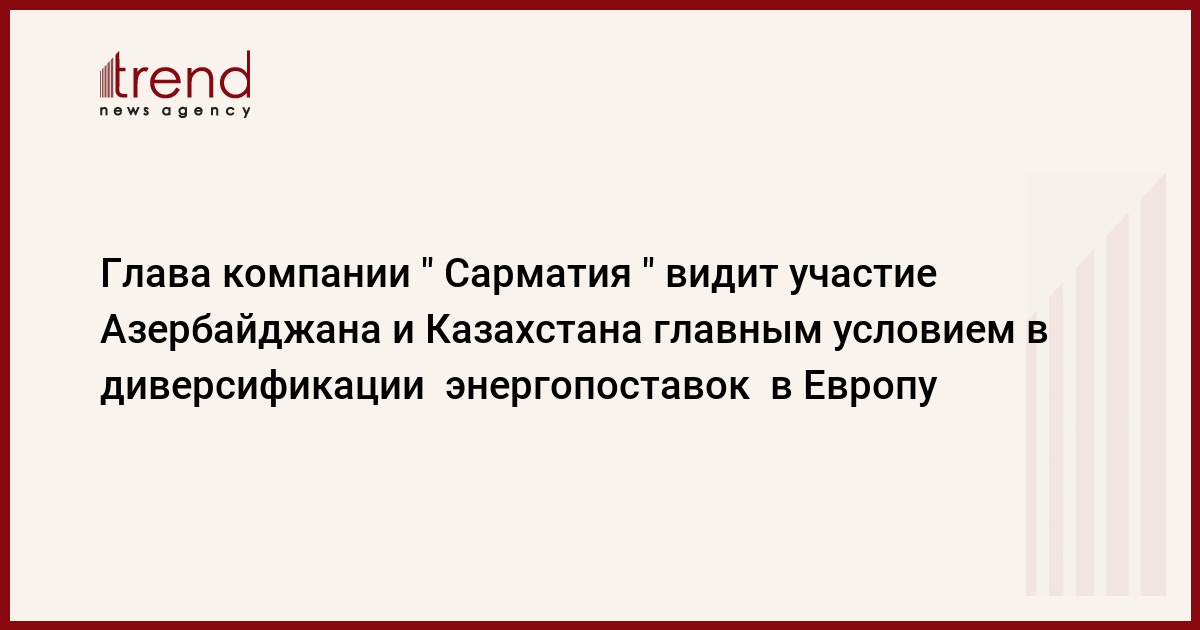 Польша, Варшава /корр. Trend С.Агаева / Участие Азербайджана и Казахстана - производителей нефти Каспийского региона - является главным условием в диверсификации энергопоставок в Европу, сказал в четверг журналистам президент компании " Сарматия ", заместитель председателя польской компании Przedsiebiorstwo Eksploatacji Rurociagow Naftowych Przyjazn S.A. (PERN) Мартин Ястржембский.