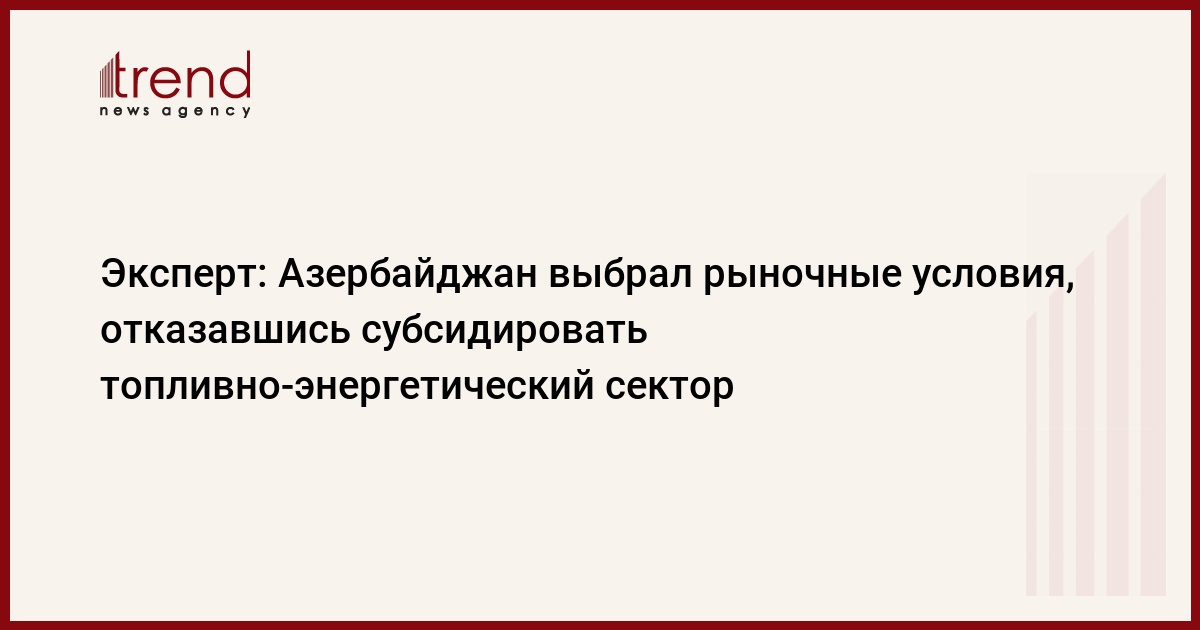 Азербайджан, Баку / Trend / Полностью отказавшись от практики косвенного субсидирования топливно-энергетического сектора, Азербайджан, тем самым, выполнил еще одну рекомендацию международных финансовых институтов, которые предлагали отказаться от политики такого субсидирования.