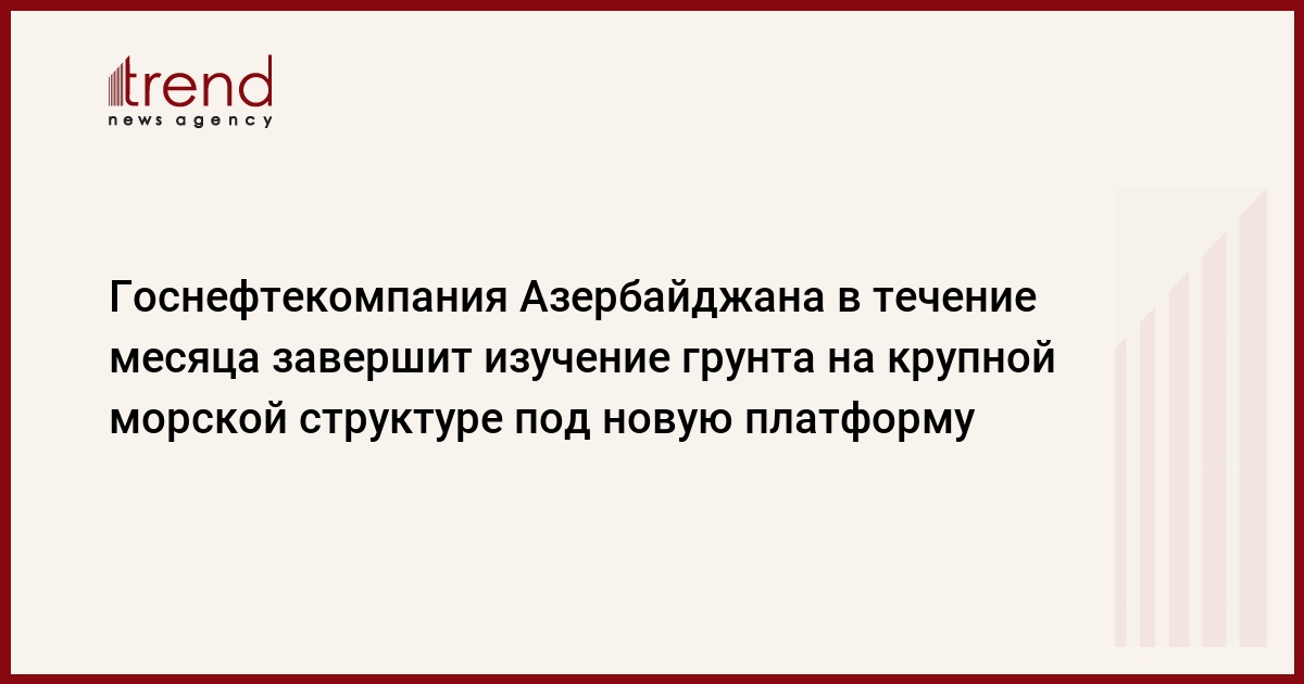 Азербайджан, Баку, 28 июня /корр. Trend Э.Исмайлов/ Управление комплексной геологической разведки и топографии Государственной нефтяной компании Азербайджана в течении месяца завершит изучение свойств грунта на газоконденсатной морской структуре "Умид".