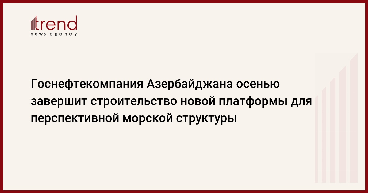 Азербайджан, Баку, 1 августа /корр. Trend Э.Исмайлов/ Завод глубоководных оснований имени Гейдара Алиева Государственной нефтяной компании Азербайджана (ГНКАР) в октябре завершит строительство платформы "Умид-1" для газоконденсатной морской структуры "Умид", сказали в пятницу на заводе.