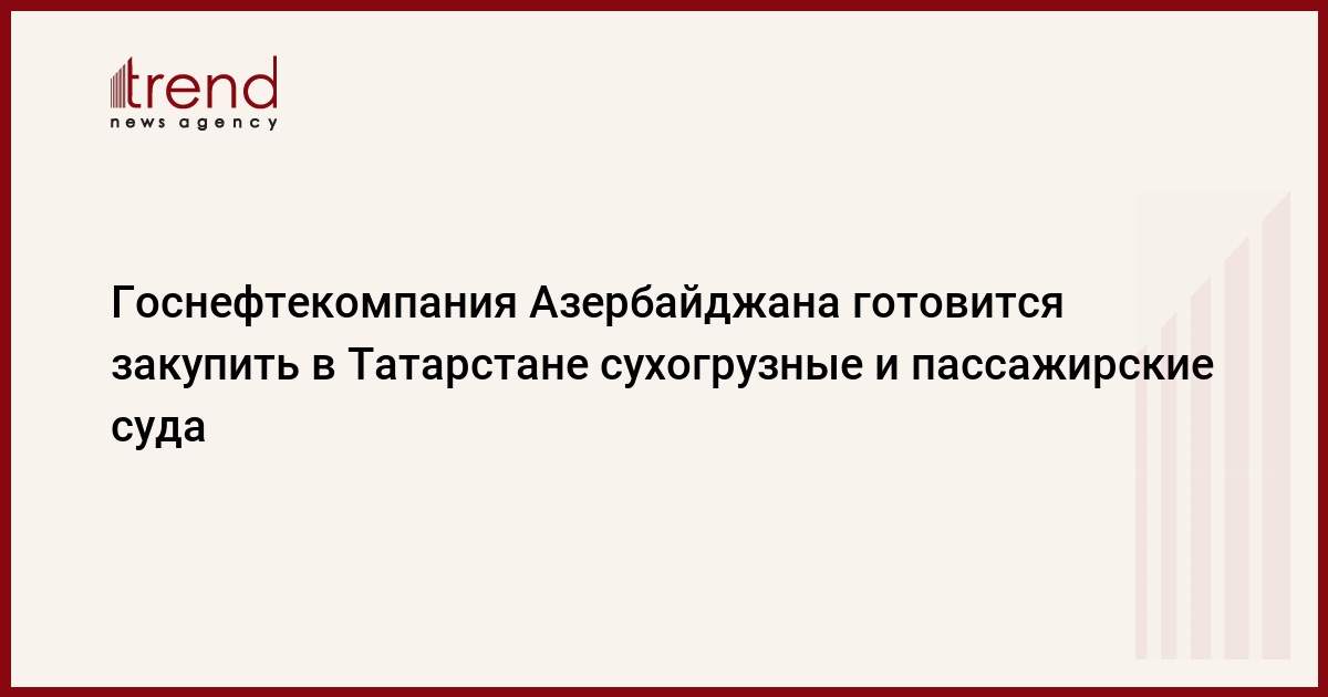 Азербайджан, Баку, 14 августа /корр. Trend И.Халилова/ Государственная нефтяная компания Азербайджана приступила к обсуждению возможностей приобретения в Татарстане сухогрузных судов и танкеров, сказал в четверг постоянный представитель Татарстана в Азербайджане Наиль Зарипов.