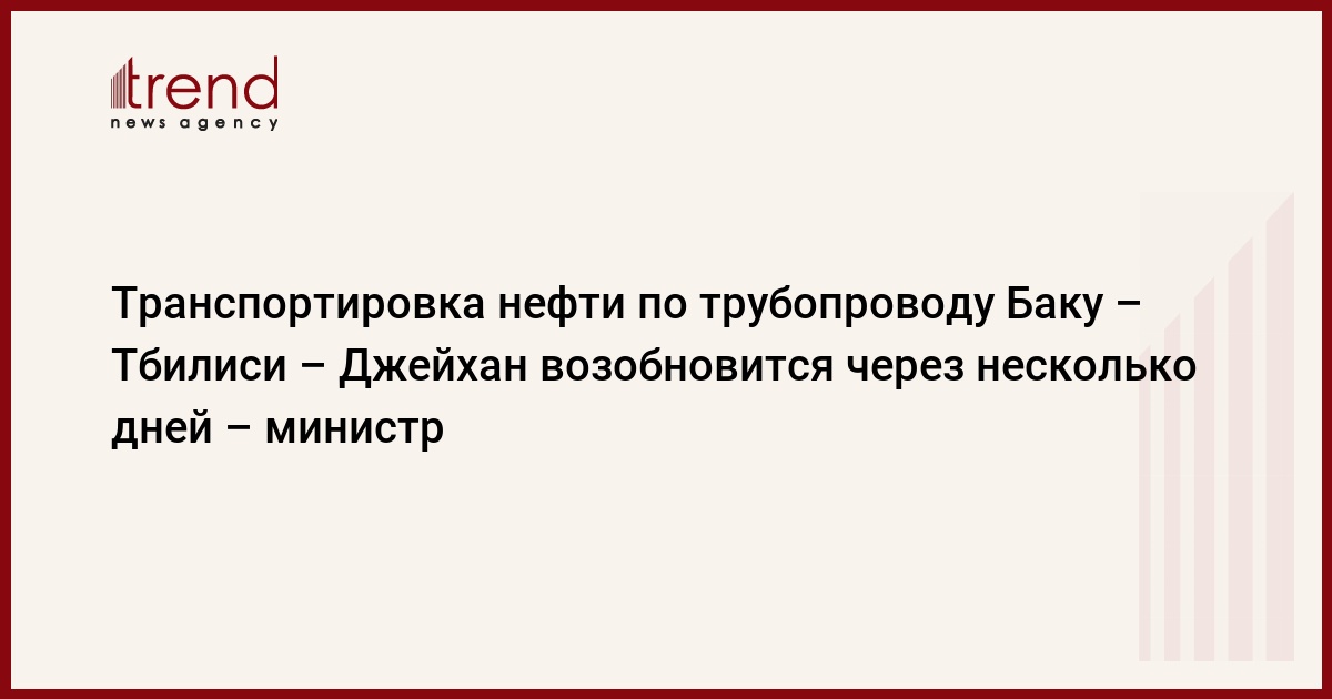 Азербайджан, Баку, 18 августа / Trend / Транспортировка нефти по трубопроводу Баку - Тбилиси - Джейхан (BTC) возобновится в течение нескольких дней, сказал в понедельник министр энергетики и природных ресурсов Турции Хилми Гюлер, пишет турецкое агентство Cihan.