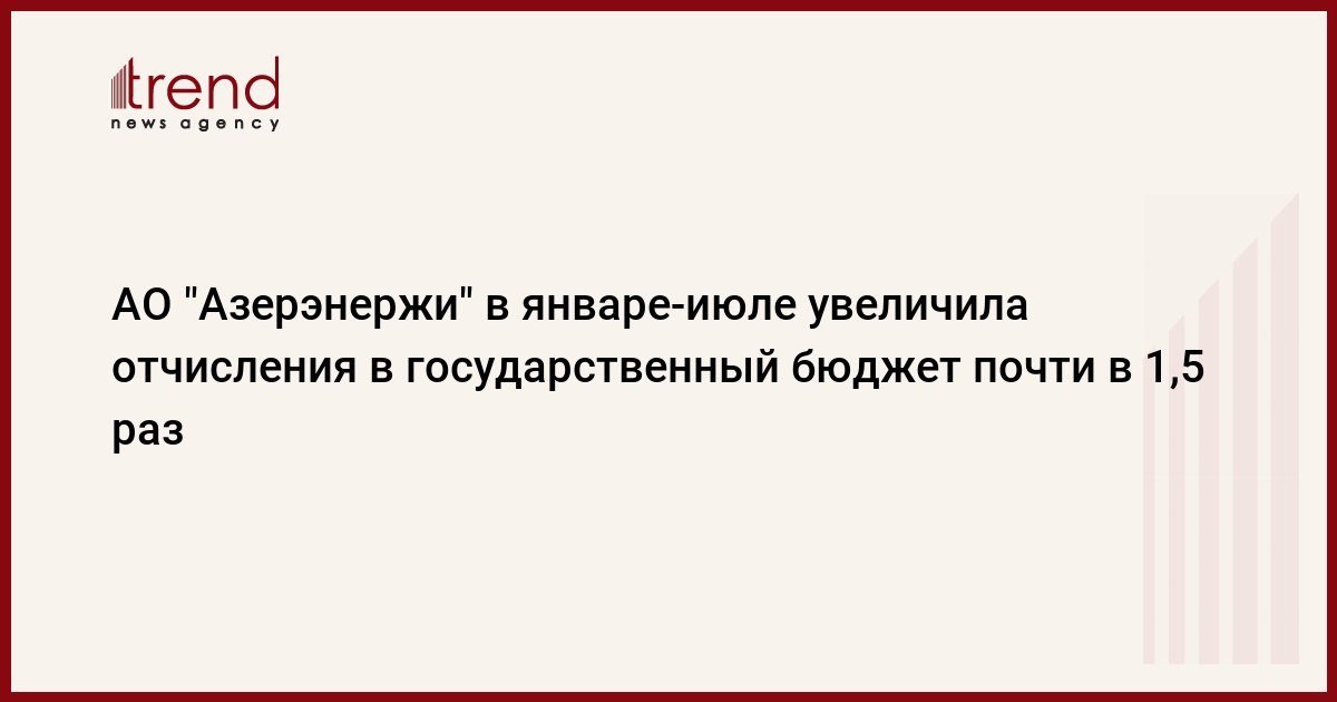 Азербайджан, Баку, 21 августа / Trend / В течение января-июля АО "Азерэнержи" в государственный бюджет было выплачено 64,1 млн. манатов, что больше аналогичного периода прошлого года в 1,4 раз, говорится в сообщении, распространенном АО.