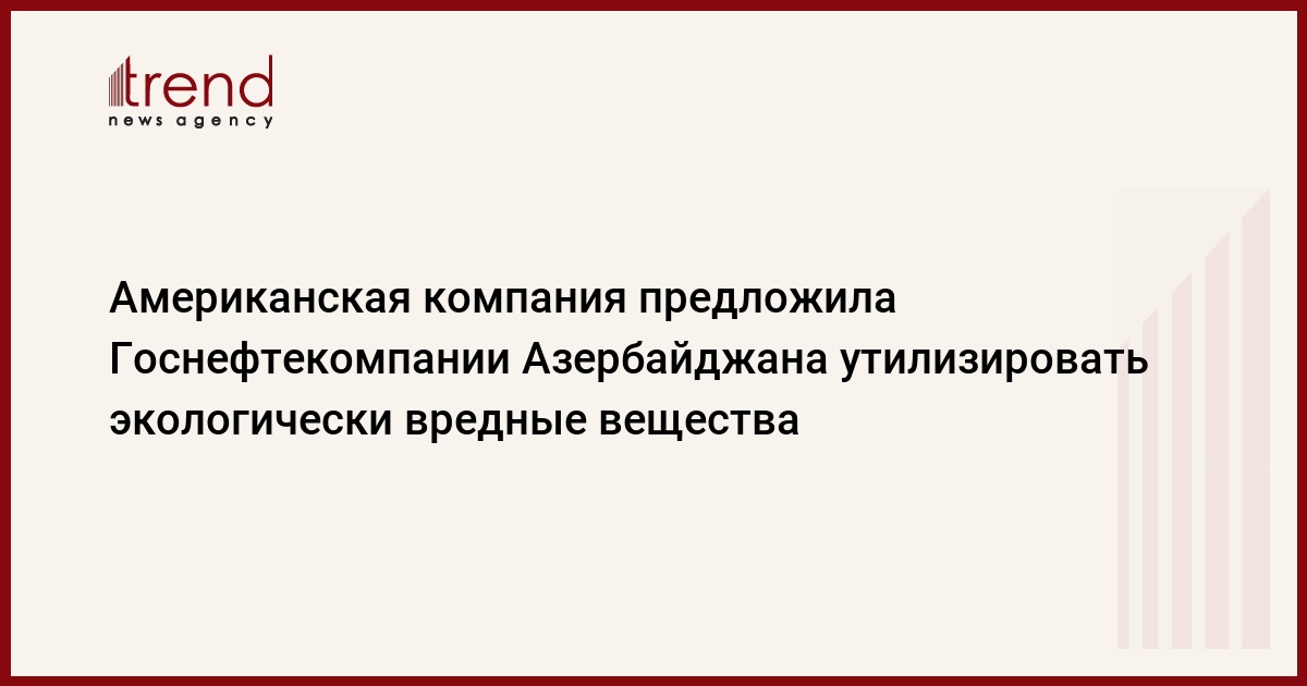 Азербайджан, Баку, 15 сентября / Trend / Американская компания "RP Consulting, Inc" предложила Госнефтекомпании Азербайджана свои услуги консультанта для выполнения Азербайджаном обязательств Стокгольмской Конвенции, говорится в сообщении управления экологии ГНКАР.