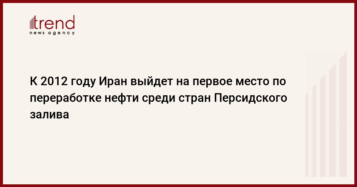 Азербайджан, Баку, 16 сентября / Trend / "До 2012 года Иран станет лидером по переработке нефти среди стран Персидского залива, оставив позади Саудовскую Аравию", - сказал глава отдела переработки Национальной нефтяной компании ИРИ Аминуллах Искендери, передает агентство IRNA.