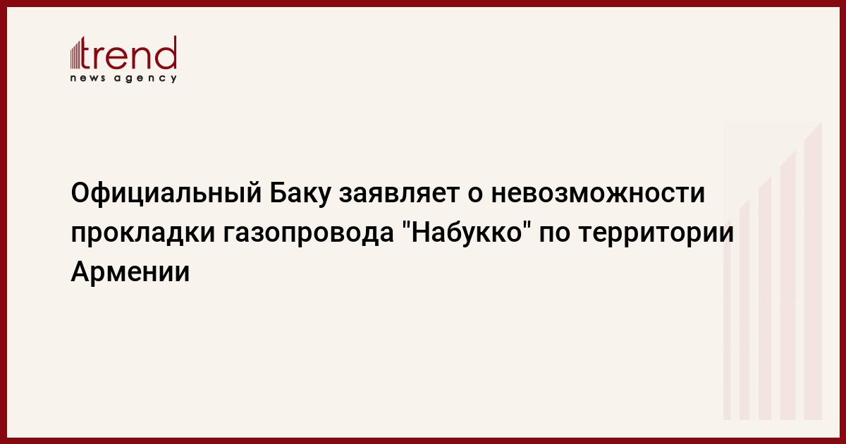 Азербайджан, Баку, 24 сентября /корр. Trend И.Ализаде/ Газопровод "Набукко", который будет поставлять азербайджанский и центральноазиатский газ в Европу, не может быть проложен через территорию Армении.