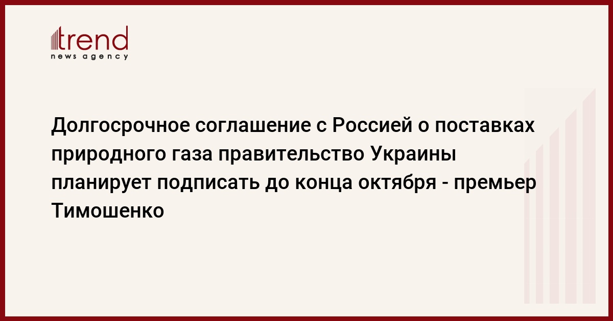 Украина, Киев, 26 сентября /корр. Trend З.Новосвитский/ Долгосрочное соглашение с Россией о поставках природного газа правительство Украины планирует подписать до конца октября.