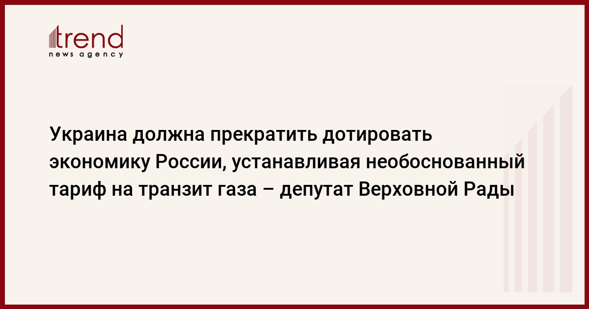 Украина, Киев, 16 января /корр. Trend З.Новосвитский/ Украина должна прекратить дотировать экономику России, устанавливая необоснованный тариф на транзит, который в 3-5 раз ниже рыночного.