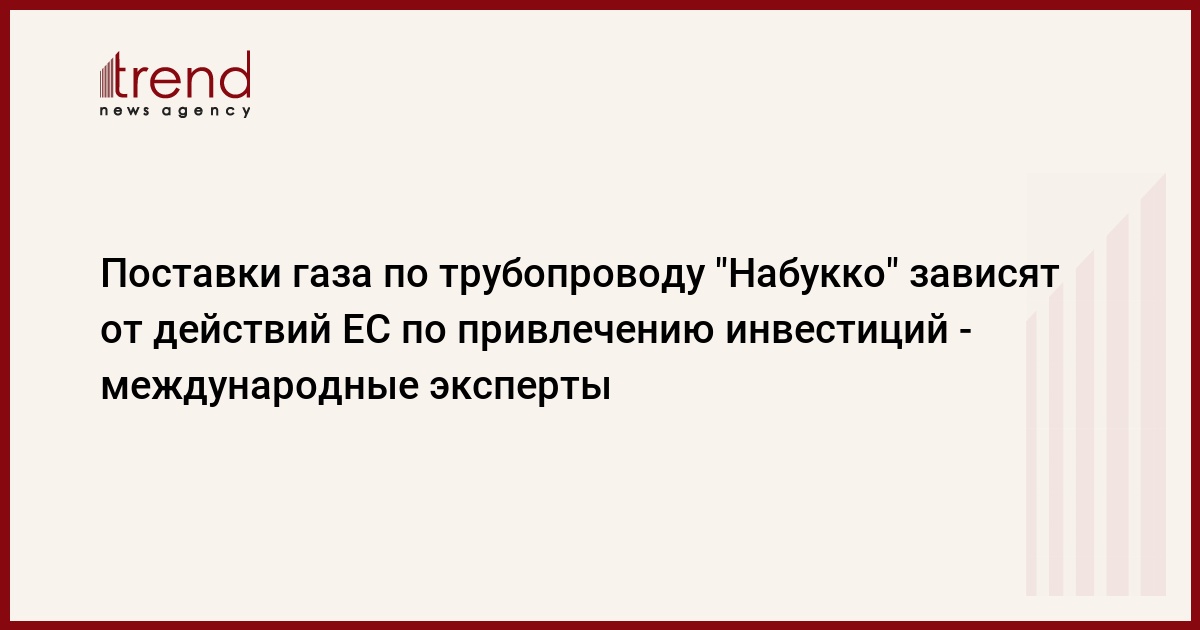 По словам эксперта американской аналитической компании Energy Security Analysis (ESAI) Эндрю Рида (Andrew Reed), недавний срыв поставок газа в Европу, вызванный разногласиями между Россией и Украиной, побудил многие страны продвигать представляющие для них интерес трубопроводы, одним из которых является "Набукко".