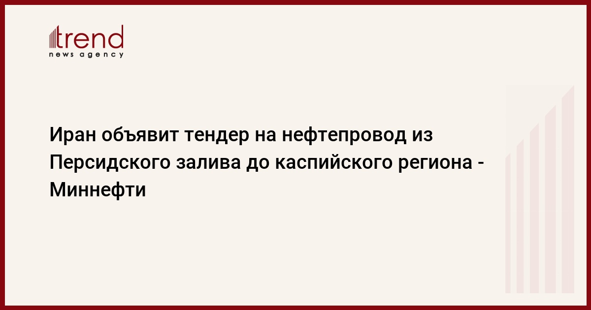 Иран в ближайшее время планирует объявить тендер на строительство нефтепровода из Персидского залива до каспийского региона, сообщил во вторник на конференции в Москве замминистра нефти Ирана Сейед Нуреддин Шахназизадэ, пишет РИА Новости.