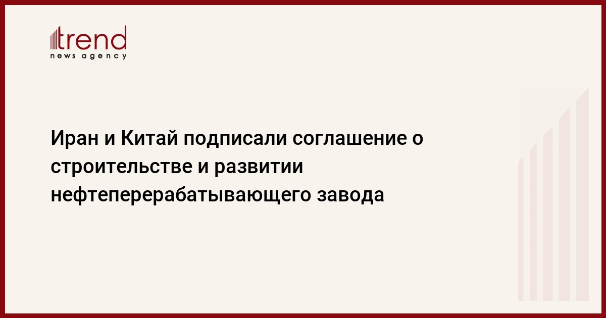 Соглашение о строительстве нефтеперерабатывающего завода было подписано между консорциумом китайских компаний и Иранской национальной нефтеперерабатывающей компанией NIOPDC. Цель контракта - развитие нефтеперерабатывающего завода "Абадан" в городе Абадан и строительство двух новых заводов в составе завода "Ситаре" в Персидском заливе, сообщает Trend со ссылкой на агентство MEHR.