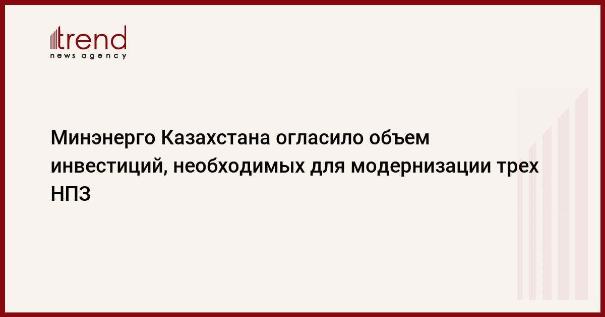 Для реализации программы модернизации трех нефтеперерабатывающих заводов (НПЗ) Казахстана требуется привлечение инвестиций в объеме около четырех миллиардов долларов, сказал в среду начальник управления организации переработки нефти министерства промышленности и минеральных ресурсов Казахстана Бахыт Маханов.