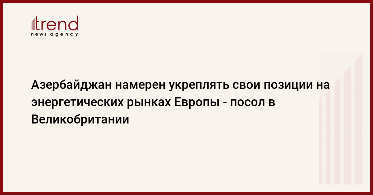 В будущем Азербайджан намерен укреплять свои позиции на энергетических рынках Европы, сказал посол Азербайджана в Великобритании Фахраддин Гурбанов 6 октября на мероприятии на тему "Энергетическая безопасность Европы: Конфликты на Южном Кавказе", организованном обществом "Европа-Азербайджан" и журналом "The House Magazine" в рамках ежегодного съезда консервативной партии в Манчестере, говорится в поступившем в Trend сообщении посольства.