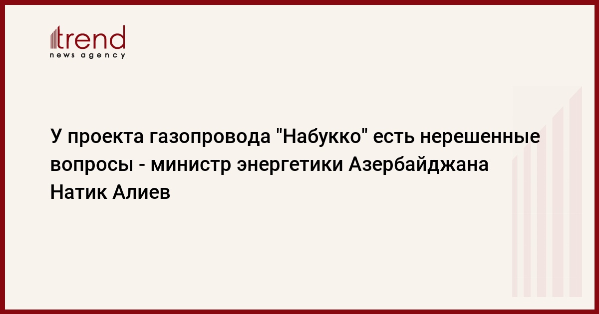 У проекта газопровода "Набукко" есть нерешенные вопросы, одним из которых является ресурсная база, сказал в субботу на пресс-конференции министр промышленности и энергетики Азербайджана Натик Алиев.