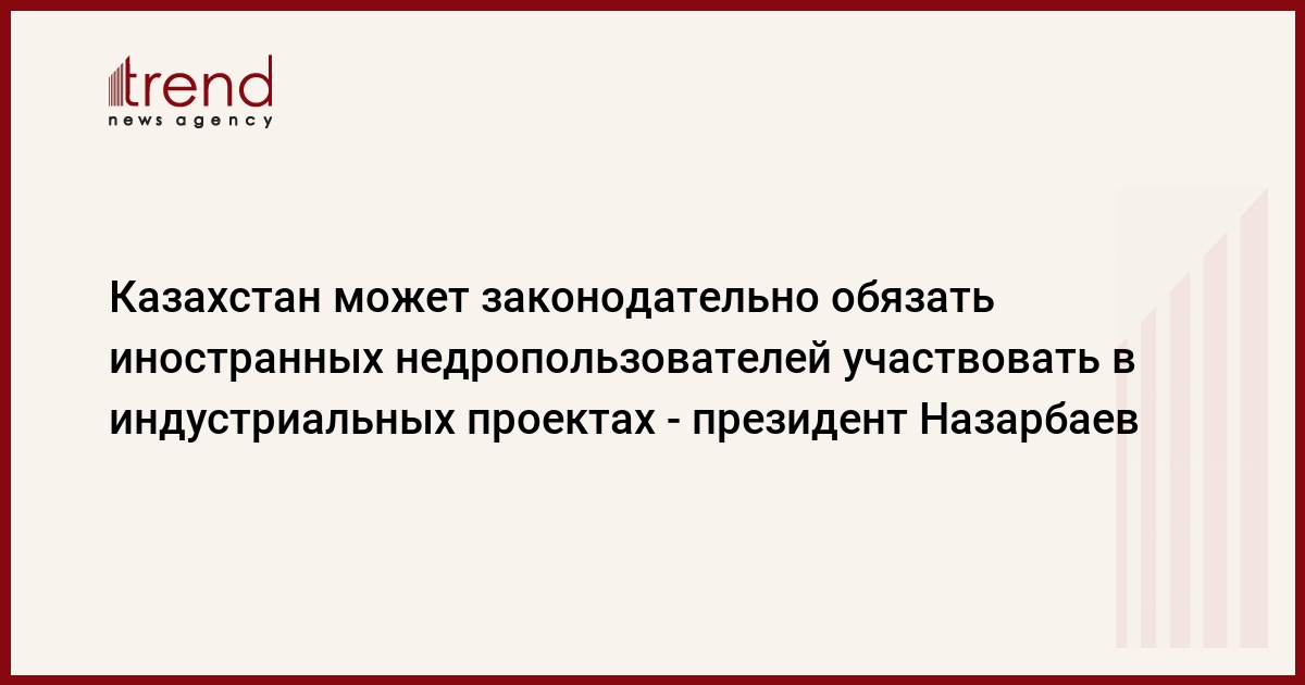 Президент РК Нурсултан Назарбаев предупредил иностранных недропользователей, что в Казахстане их могут законодательно обязать принимать участие в реализации индустриальных проектов, пишет КазТАГ.