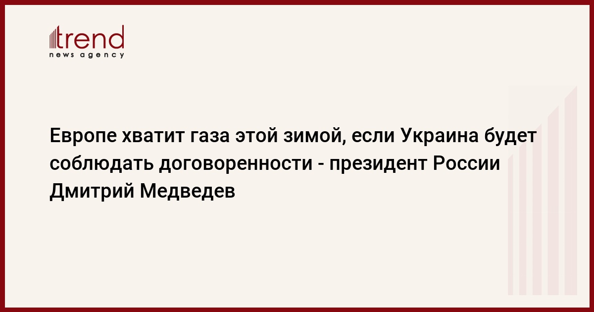 Европе хватит газа этой зимой, если Украина будет соблюдать договоренности, считает президент России Дмитрий Медведев.