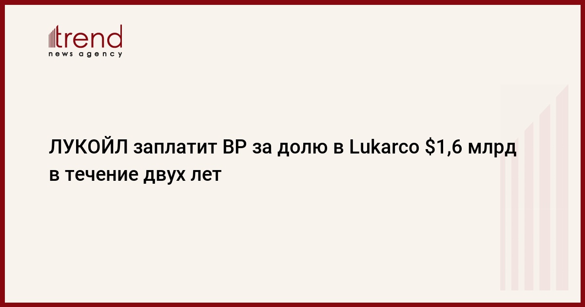 ЛУКОЙЛ выплатит британской BР за 46-процентную долю в их совместном предприятии (СП) Lukarco, которое в свою очередь владеет 12,5% Каспийского трубопроводного консорциума (КТК), 1,6 миллиарда долларов в течение двух лет, сообщает РИА Новости со ссылкой на BP.