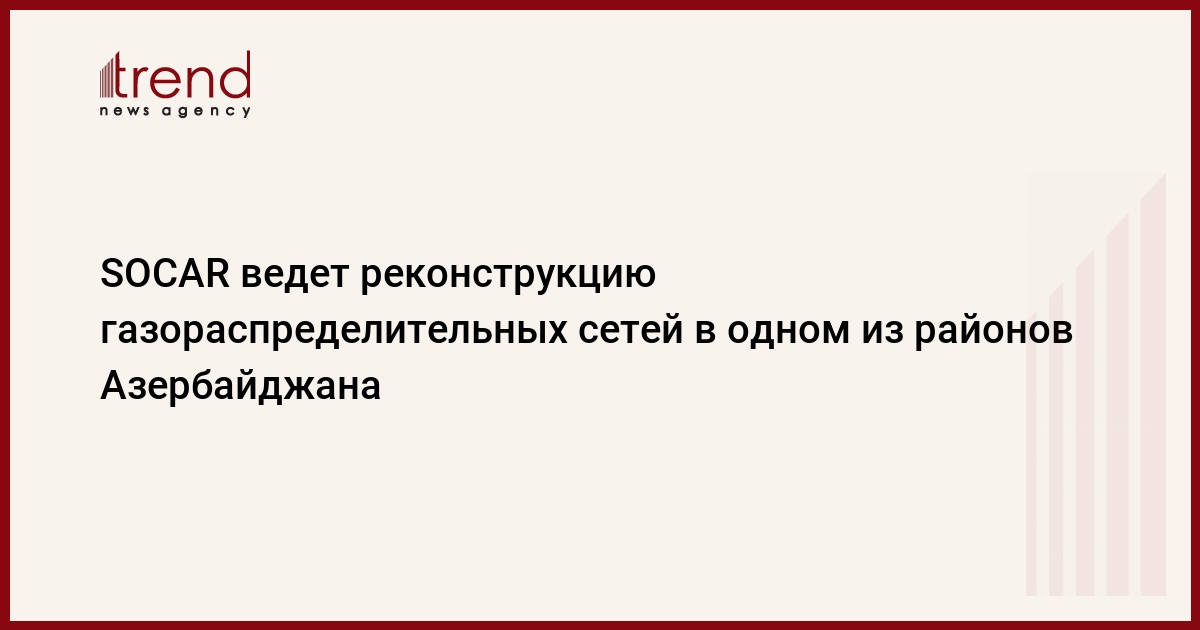 Компания SOCAR (Госнефтекомпания Азербайджана) продолжает работы по реконструкции газораспределительной системы в Гаджигабульском районе Азербайджана, говорится в сообщении, распространенном SOCAR в понедельник. Необходимость в реконструкции сетей возникла после селей и наводнения, которые произошли в районе в сентябре этого года и явились причиной приостановки подачи газа.