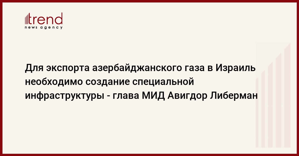 Поставки азербайджанского газа в Израиль могут быть осуществлены только при наличии газопровода либо при строительстве специальных терминалов по сжижению газа, сказал в четверг в интервью ряду азербайджанских СМИ по итогам своего первого официального визита в Баку министр иностранных дел Израиля Авигдор Либерман.