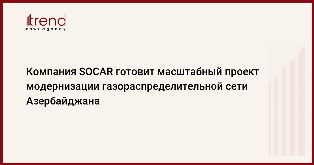 Производственное объединение "Азеригаз" (распределение газа) компании SOCAR (Госнефтекомпания Азербайджана) проводит переговоры с крупными европейскими компаниями по вопросу подготовки проекта концепции, а также реконструкции и модернизации системы газораспределения республики, говорится в сообщении SOCAR.
