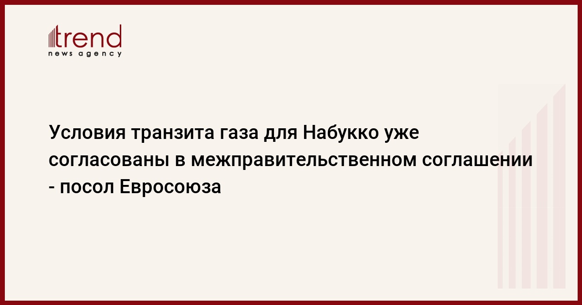 Межправительственное соглашение по поставкам газа, который будет добываться со второй стадии разработки месторождения "Шах Дениз", по трубопроводу Набукко, уже достигнуто в прошлом году в Анкаре. Документ содержит все условия для транзита газа.